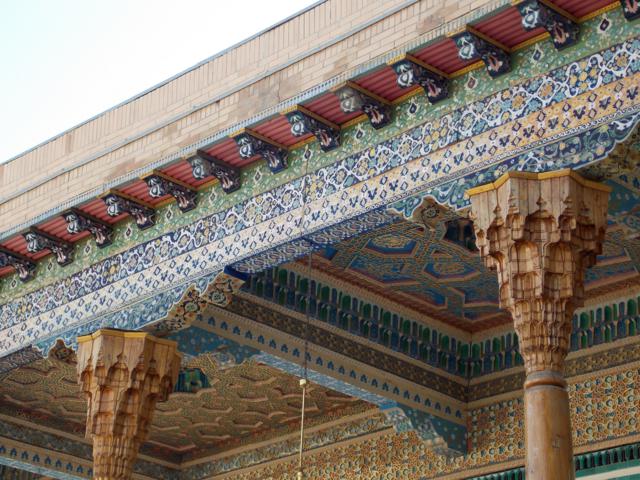 Ceea ce impresioneaza pe profan este maiestria artistica a constructiei. Ne-am obisnuit deja cu terasele deschise, sprijinite pe stalpi din lemn (ayvan). Tavanele sunt aici splendid decorate si colorate.