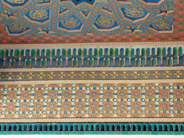 The visitor is impressed here by the beautiful ceilings, the reflections in the small ponds, the women’s colorful dresses, the cupolas.