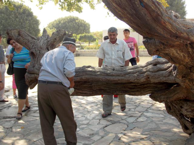 to pray, considered a holy place. So is also the remains of the muellberry planted here by Naqshbandi. People walk in circles around it, praying and believing their wishes will come true. Our guide emphasized that this is wrong, because only Alah can grant one’s wishes, not an object or even a holy man.