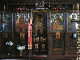 The St. Anargyri Church was opened, which is very rare, so I took some photos inside. In the middle of the village, at the traditional taverna, the old men dring coffee, tea or ouzo, looking at the people. A white marble statue reminds those from the village who gave their life for the country, during 1919-1949. Here is also the bus station.